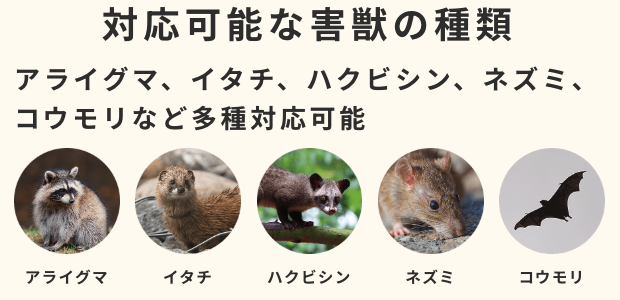 小さな害獣も駆除の対象にするほか、再発させないように徹底した駆除を行うのが同社の強みです。