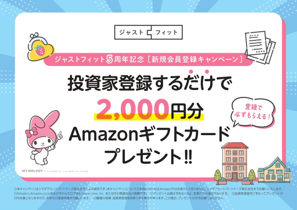 また、ジャストフィットは投資家登録で2,000円分アマギフがもらえるキャンペーンを実施しています!