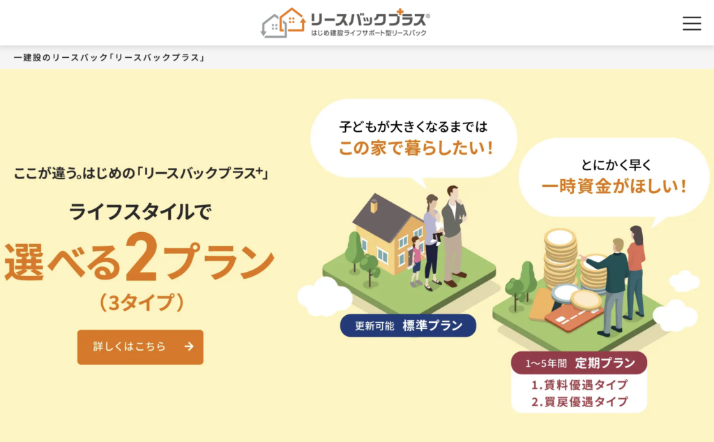 一(はじめ)建設は、東証プライム市場に上場している飯田ホールディングスグループの建設会社で、「リースバックプラス」を運営しています。