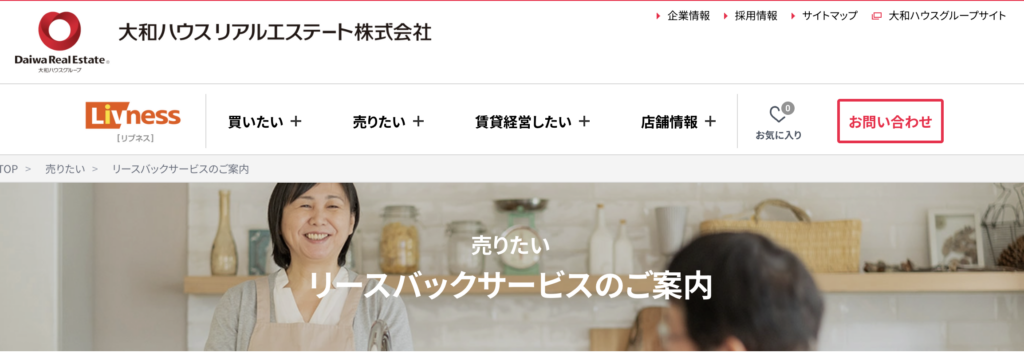 大和ハウスグループが展開している「Livness」という不動産サービスの一つとしてリースバック事業を行っています。